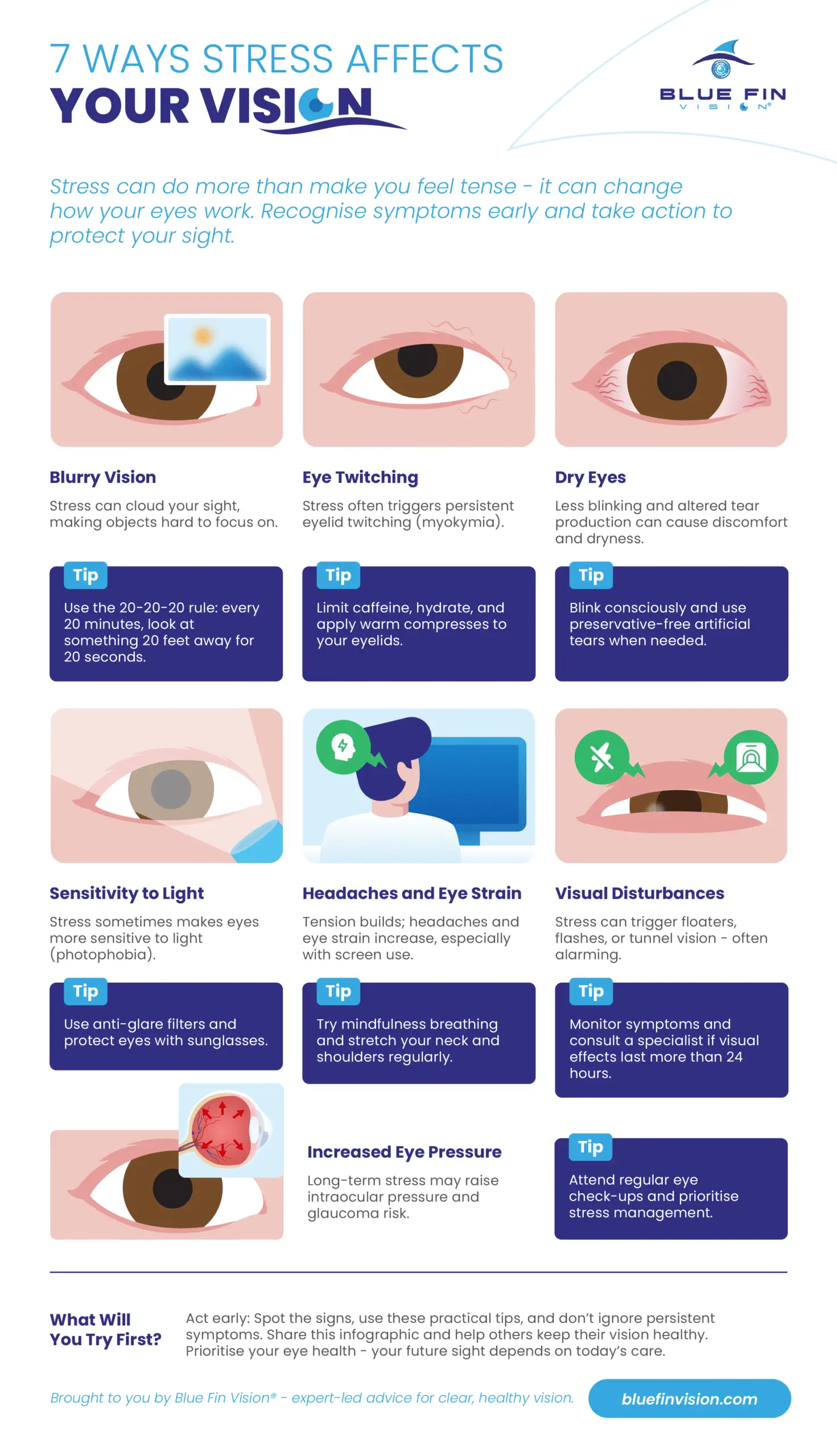 Stress isn’t just a mental health concern – it can have a surprisingly strong effect on your eyesight. With modern life’s pressures, safeguarding your vision becomes just as crucial as looking after your mind. Recognising how stress manifests in your eyes empowers you to take proactive steps towards better ocular health.